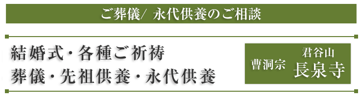 | 寺院名 | 君谷山(くんこくざん) 長泉寺(ちょうせんじ) |