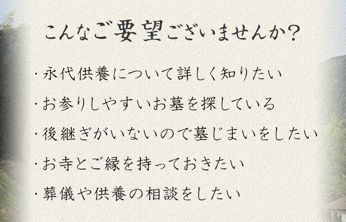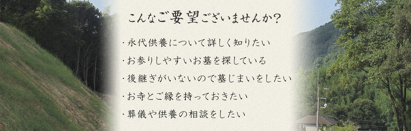 当山では比較的費用を抑えることのできる寺院でのご葬儀をご提案しておりますので、ご要望の方はお気軽にお申し付けください。